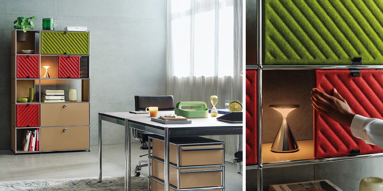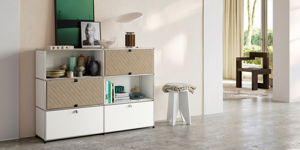 Mit den neuen USM Haller Soft Panels erhält der ikonische Designklassiker eine überraschend sanfte Ergänzung. Textile Oberflächen und grafische Muster bringen eine neue Haptik in die charakteristische Metallstruktur und eröffnen ein völlig neues, spielerisches Erlebnis der Modularität.