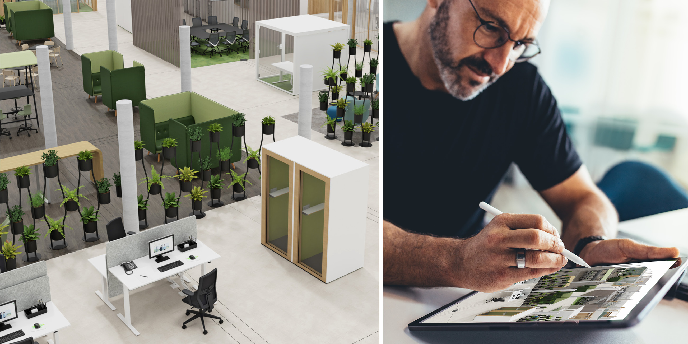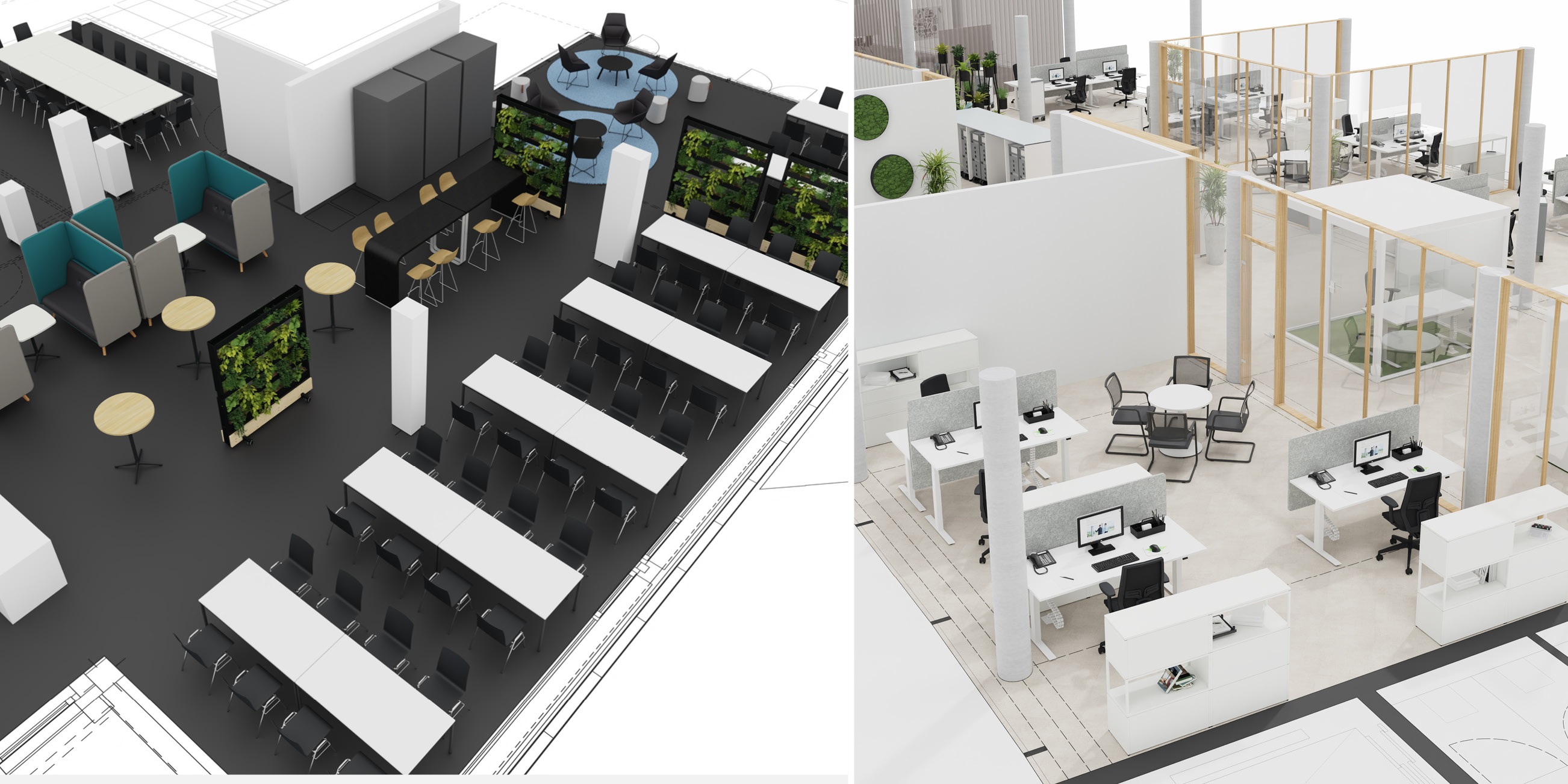 Wir begleiten Unternehmen auf dem Weg zu modernen, flexiblen und inspirierenden Arbeitsumgebungen. Mit einem ganzheitlichen Blick auf Mensch, Organisation und Raum entwickeln wir Arbeitsplatzkonzepte, die die Zusammenarbeit stärken, Prozesse vereinfachen und die Identität eines Unternehmens sichtbar machen.