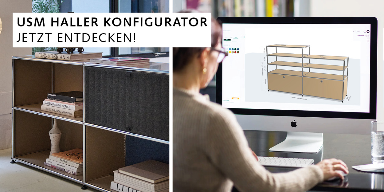 Entdecken Sie das USM Möbelbausystem, verwenden Sie den USM HALLER Konfigurator, um individuelle USM Möbelstücke für Ihre Räume und Arbeitsumgebung zu gestalten. Ebenfalls finden Sie eine grosse Auswahl an vorkonfigurierten Produkten, die Sie einfach und bequem online bei uns bestellen können!